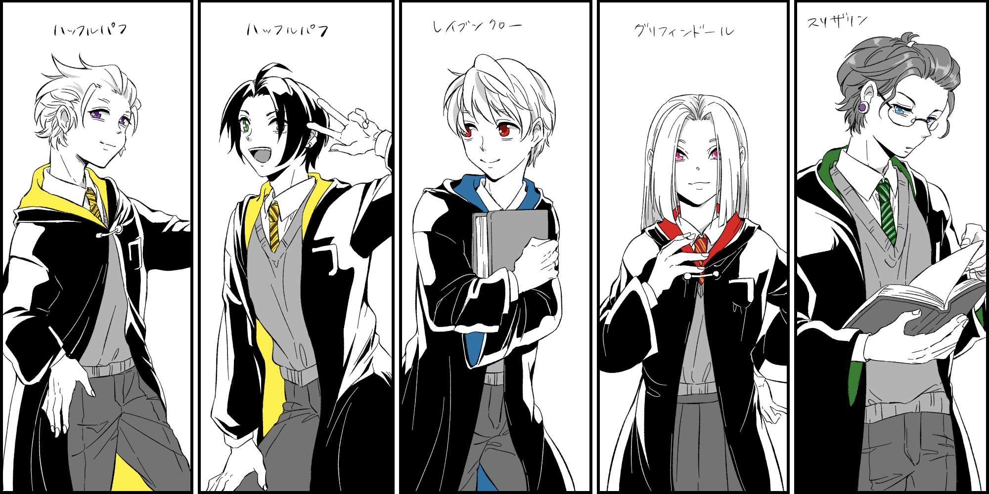 某魔法学校のコスというかパロというか……ハリポ…は実はきちんと観たことがなくて、完全にフォロワーさんの影響で描いたものなんですが、ローブ描くのめっちゃ楽しかったです。こいつらファンタジー世界の住人だから割と親和性はあるんじゃねーかな。わからんけど。制服がぐぐってもガチャかコスプレの画像ばっかり出てきてよくわからなかったので、それを参考に割と想像で補ってます。あしからず。